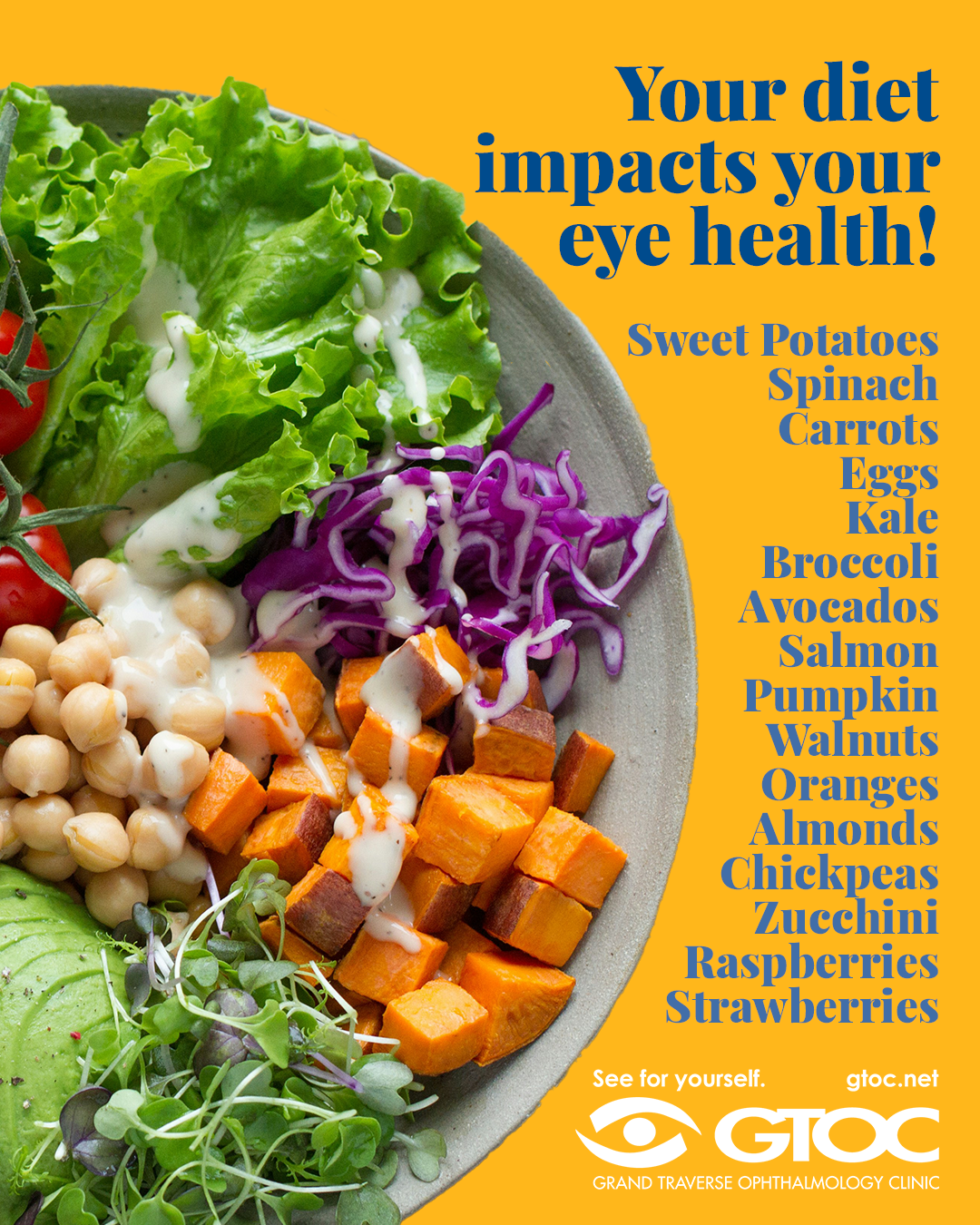 Maintaining healthy vision goes beyond regular eye exams at Grand Traverse Ophthalmology Clinic. The foods you eat play a significant role in protecting your eyesight and supporting overall eye health. Eating nutrient-rich foods consistently can help reduce the risk of age-related eye conditions, improve night vision, and support long-term eye function. Including a variety of vitamins, minerals, and antioxidants in your diet ensures your eyes receive the protection they need against daily stress and environmental damage.